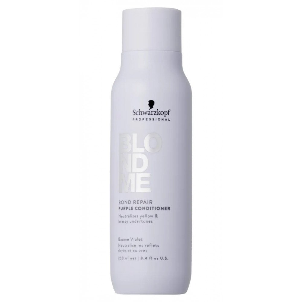 BLONDME Bond Repair Purple Conditioner предназначен для осветлённых волос, чтобы освежить холодный оттенок и убрать жёлтые тона. Он содержит Bond Repair технологию, масло сладкого миндаля и экстракт василька, восстанавливает внутренние связи волос, делая их в пять раз прочнее и снижая ломкость до 80 % после одного применения. Кондиционер облегчает расчёсывание, разглаживает пористую поверхность, придаёт волосам шелковистый блеск.=R91